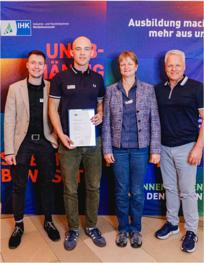 Am Donnerstag, den 23.10.2025 waren wir eingeladen zur Bestenehrung der IHK Industrie- und Handelskammer Nordschwarzwald in Bad Liebenzell im Spiegelsaal des Kurhauses. Wir freuen uns, dass der Auszubildende unserer Tochterfirma ProForm, Jannik Klumpp, im Ausbildungsberuf Werkzeugmechaniker zu den besten Absolventen unter allen Auszubildenden im Bezirk Nordschwarzwald im Jahrgang 2025 gehört.