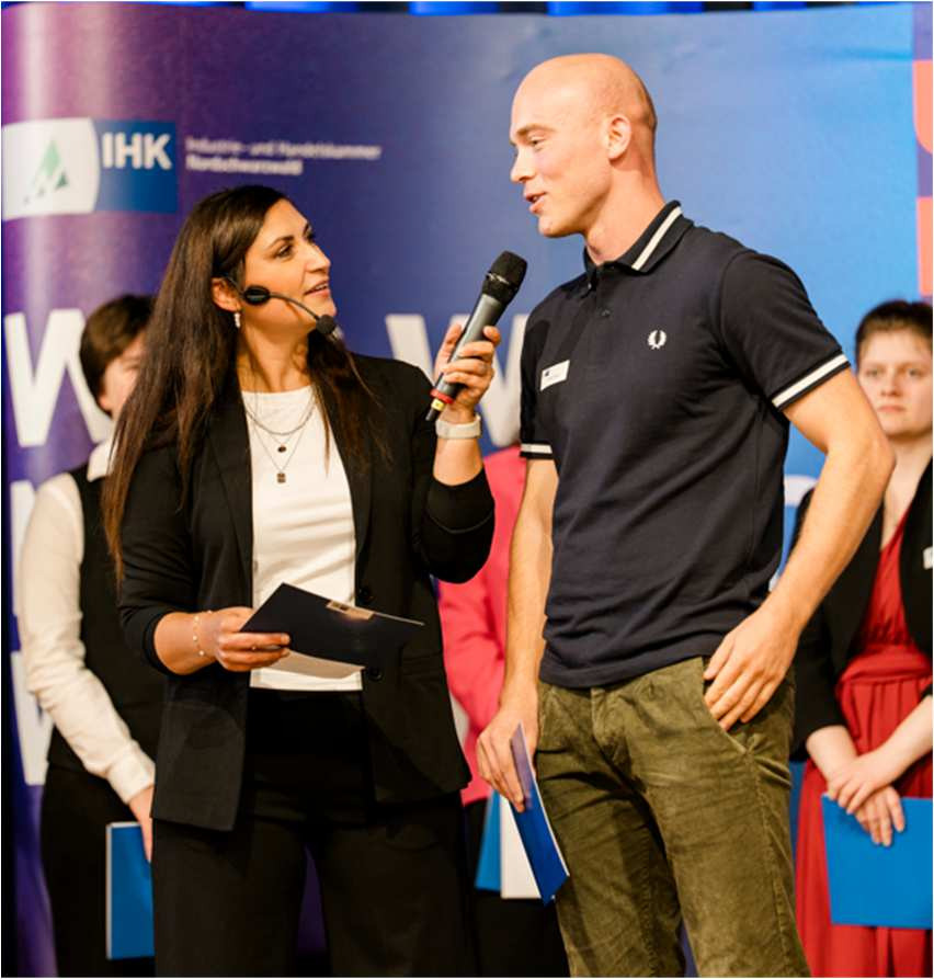 Mit einem gelungenen Event wurden die Absolventen geehrt, erhielten Urkunden und Bildungsgutscheine – alles vor geladenen Gästen wie Familien und Freunden, Vertretern der Ausbildungsbetriebe und Ausbildern. Einige zufällig Ausgewählte durften auf der Bühne sich und ihre Ausbildung präsentieren – befragt von einer Radiomoderatorin und vor hunderten Gästen – so auch Jannik. Auch das hat er super gemacht!